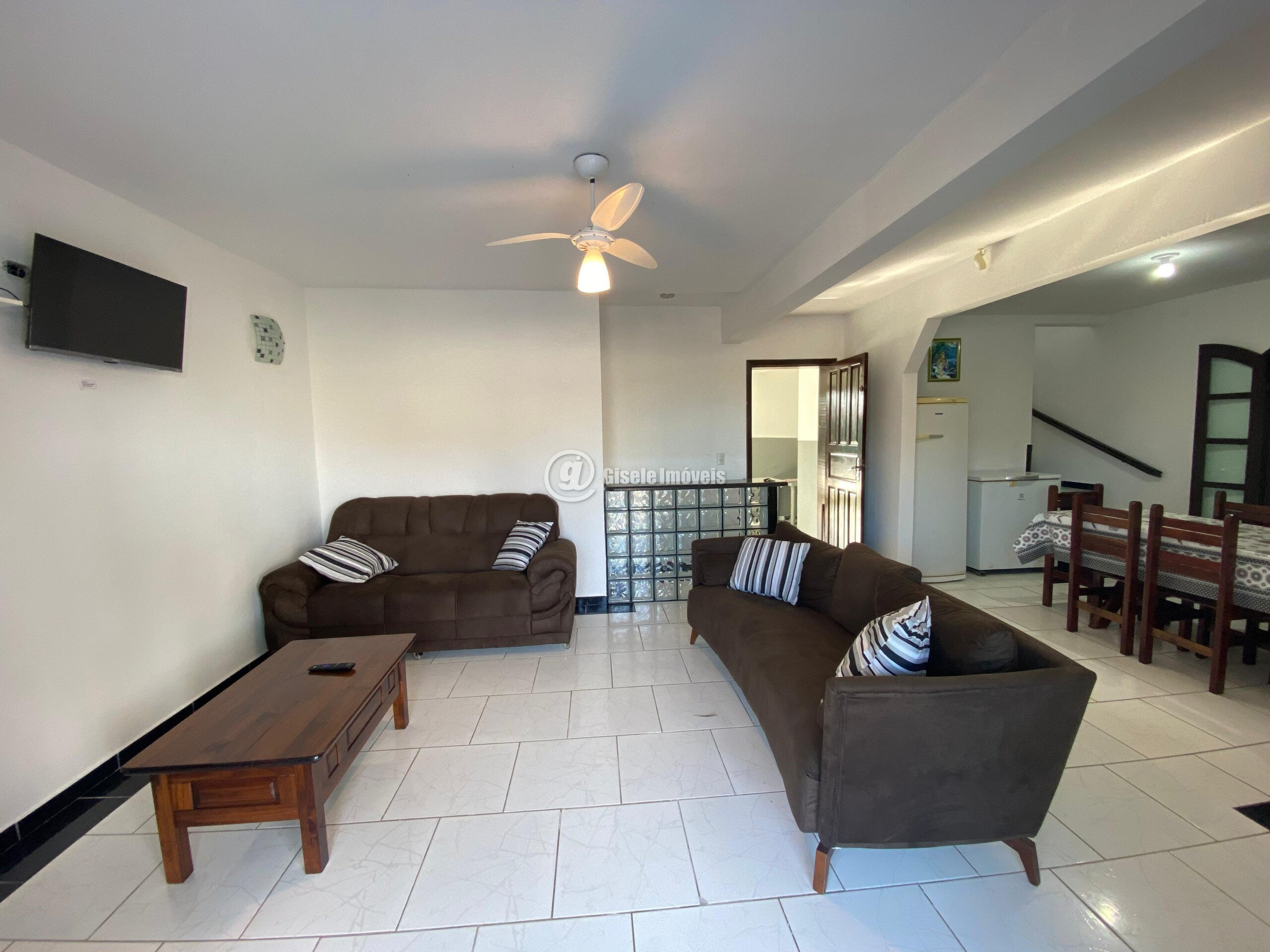 Sobrado c/ piscina 7m x 3m / wifi / composto p/ 4 dorms (1 suíte); 2 dorms c/ ar-condicionado sendo 1 ar quente e frio; 2 c/ ventilador de teto / suíte c/ TV 32" / acomodação p/ 18 pessoas (cama p/ 11 pessoas + 3 colchões de casal + colchão de solteiro) / cozinha e copa conjugada / microondas / 2 geladeiras simples / freezer horizontal / sala com ventilador de teto / smart TV 32" / 4 bwc / 2 vagas de carro / chuveiro frio p/ retirada de areia / sistema de alarme monitorado.